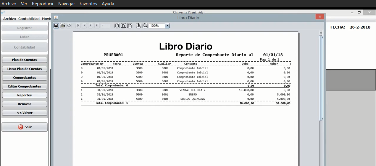 Sistema contable desarrollado en Java. Respaldo de la base de datos en MySQL y usando iReport para la generación de l...